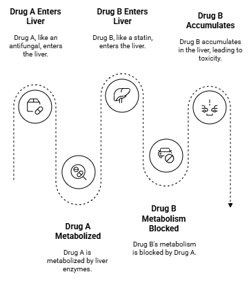 Think of your liver's enzymes as toll booths on a highway, breaking down drugs so they can exit your body. Now, imagine you take "Drug A," and it unexpectedly closes down a specific toll booth. If "Drug B" needs that exact same toll booth to be processed, it gets stuck. As you continue taking your daily dose, Drug B creates a massive traffic jam, building up to potentially toxic levels.