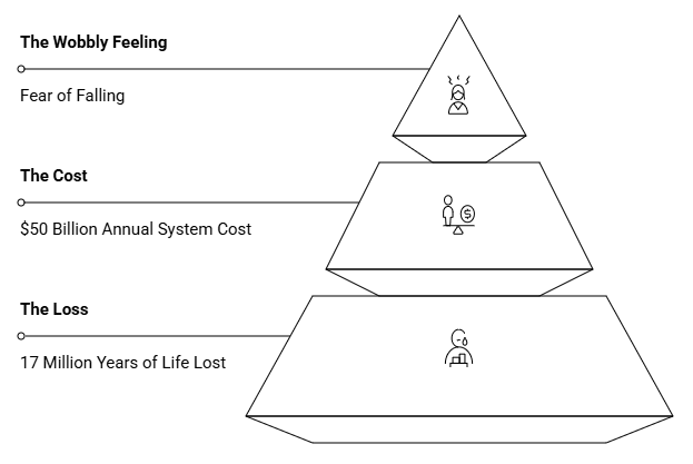 In the US alone, the economic toll of falls hits $50 billion annually. Globally, we lose 17 million years of life to these preventable events.